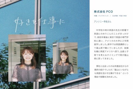 イベント・展示会 グラフィックデザイン WEB 街中ににぎわいが波及した大規模フェス 大手モールフェス イベント・展示会 グラフィックデザイン 世界に通じる技が息づく富山の「KOGEI」 日本橋とやま館「TOYAMA KOGEI 展」 国際会議 通訳 グラフィックデザイン 世界の環境問題を富山で議論 G7環境大臣会合 NEWS 2026/01/052027年新卒:キャリタスUCにて求人票を公開しました。 一覧を見る SERVICEサービス 企画PLANNING コンベンションCONVENTION 通訳・翻訳TRANSLATION 私たちについて 私たちについて MAGAZINEマガジン 日々、富山でイベントの企画運営や地域のデザインに携わる社員が、気になるモノやコトについて独自の視点から発信しています。 TAGS 経営 コンベンション 実績紹介 メディア掲載 社長blog 未分類 スタッフblog イベント・展示 SMART Conference インターン・採用 暮らし 地域 暮らし地域メディア掲載スタッフblog 働く場所・生きる場所を自由自在に。 働く女のワーク&ライフマガジン「Woman type」に取材いただきました。 二人とも、子育て真っ最中ですが、それぞれの… 2025/06/07 地域メディア掲載スタッフblog 子育ての地として、アメリカではなく富山を選んだ 富山県Uターン就職ガイド(令和6年度版)に掲載されました。 アメリカにわたり、夫とともに富山へ移住し、子育てと仕事を自分… 2025/06/07 インターン・採用 長期インターン募集! 株式会社PCOでは、学生のみなさま向けの長期インターンを募集しております。 ▼長期インターン募集概要と紹介http://… 2025/03/06 スタッフblog 新卒社員インタビュー:小池倫太郎の場合 2024年春に入社した小池倫太郎さん。福祉・教育系の学部を卒業し、教員免許も持っているけど、代表との出会いから株式会社P… 2025/03/06 地域メディア掲載スタッフblog 違いを知り、理解を深める 富山市男女共同参画情報交流誌「あいのかぜ」で取材をいただきました。 男女というか、『人間』の集まりと思えば、バイヤスも少… 2025/03/06 未分類メディア掲載スタッフblog 富山から世界につながる仕事 コンベンション営業部の林 韋伶(Lin Wei Ling)は、台湾出身で3か国語を操り、日々業務をこなしています。 その… 2025/01/24 もっと見る