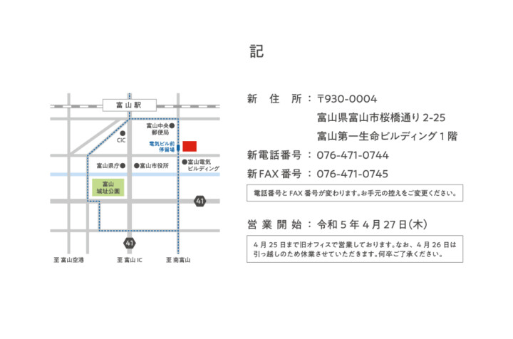 本社を移転いたします(2023年4月27日~)2023/04/26